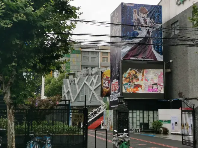 本次比赛的场地是星尚Show3D创意空间,是一个专门承办婚宴、演出、年会等大型线下活动的场所。在比赛当日,建筑的外侧早已张贴了一下午相关的宣传幕布,大屏上反复播放游戏王的广告。只是不知道在比赛进行时,外面的大屏是否还会播放直播间的内容?