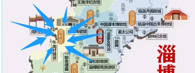 下面分着介绍一些淄博的区县的景点,截至2021年,淄博市下辖5个区、3个县。(现在)
