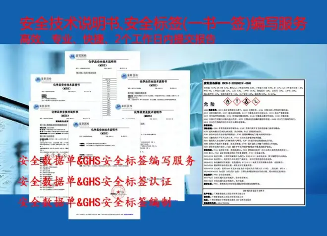 欧盟MSDS认证主要编写一份关于产品的化学组成信息、危害信息、物理和化学数据等内容的报告,一般2-3个工作日