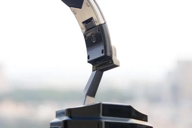 在耳机与头梁的伸缩杆链接处,还做了金属固定,除了提升颜值以外,还让其更加牢固,长久使用也不容易损坏。
