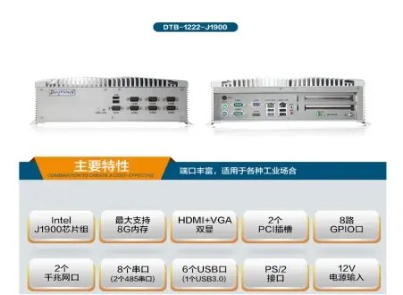 以上是工控机的大小和外观,工控机的型号推荐是DTB-1222 -J1900。工控机的配置如下: