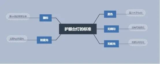 大家在选择护眼台灯的时候可以按照这个选购护眼台灯的标准:最好选择国标AA级的标准、防蓝光达到Rg0级别、在显色方面至少要大于Ra90、没有可视频闪、无眩光。