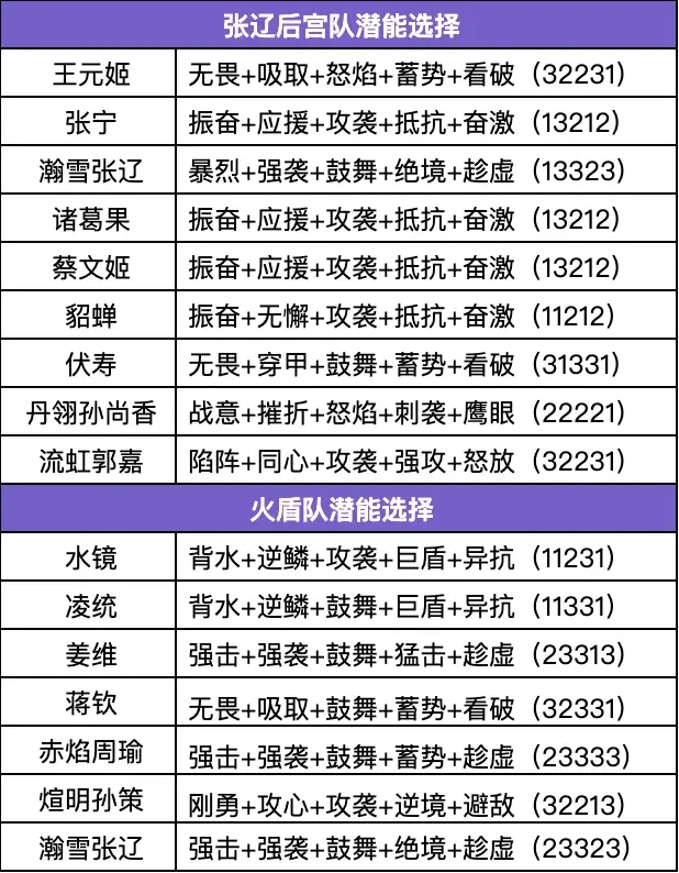 ③成型阵容:瀚雪张辽(乐进护法)+张宁+貂蝉(5火配专武)+丹翎孙尚香(马云禄护法)+伏寿+蔡文姬(5火配专武)