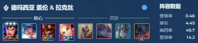 所以除非你有法转能找二星外援,否则前中期尽量用法师配合3虚空或者3诺克来过渡,等7级启动D到拉克丝皇子后再转成标准体系即可