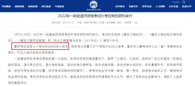 我们这次从重庆的应试人数进行分析,在2021年的一级建造师考试中,重庆考区的报考人数约在56000名左右,而今年一建补考的报考人数在48000这个区间,两者对比一下的话,可以得出下降了14.2%的数据。