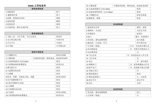 飞机检查单就是飞行过程中一项一项的检查列表,是帮助飞行机组防止“错、漏、忘”的必备飞行资料。
