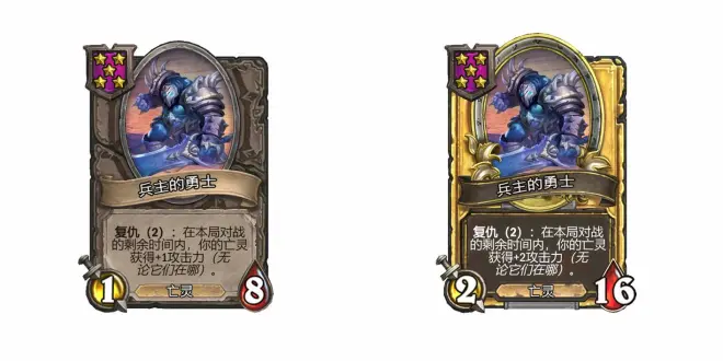 5星1/8亡灵,复仇(2):在本局对战的剩余时间内,你的亡灵获得+1攻击力(无论它们在哪)