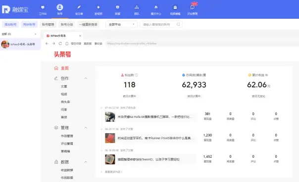 后来为了解决分发问题找了很多分发软件,要不然就是有BUG要不然就是不稳定,直到我使用了融媒宝之后,才知道一款好的自媒体人分发软件该是什么样的。