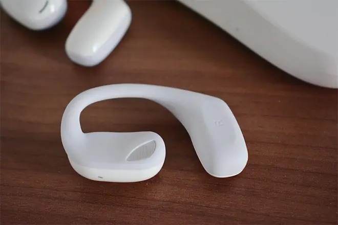 再来看耳机,作为一款真无线耳机,它可以说打破了原有TWS的外观设计,非常的创新。而且开放式的设计理念,既不压迫耳道,减少细菌滋生,又解决了传统耳机音质的问题,实用性极高。