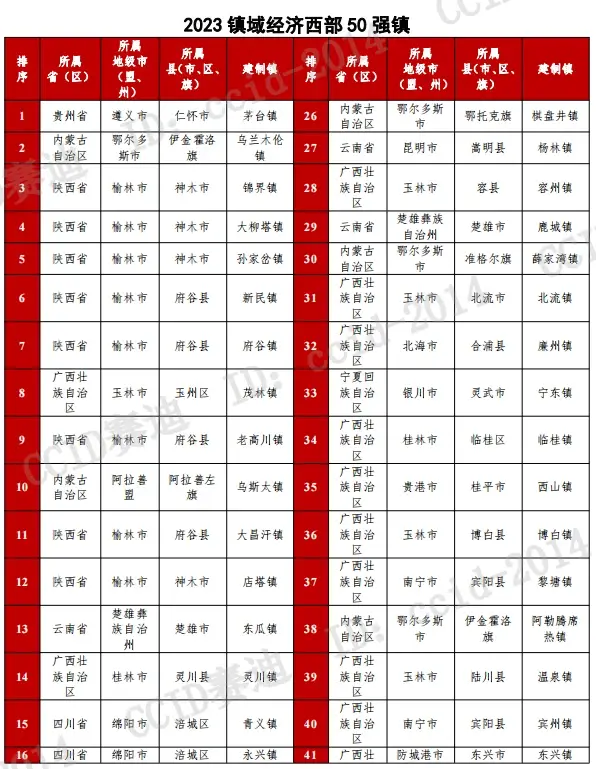 2023年全国百强镇出炉,陕西镇上榜分别是,神木的锦界镇排26名和大柳塔镇排29名,关中城市中最强镇蔡家坡全国排404名