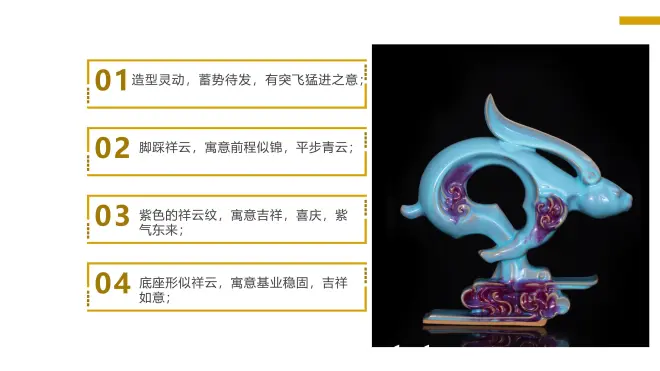 【藏品名称】:钧瓷《兔飞猛进·平步青云》吉祥尊