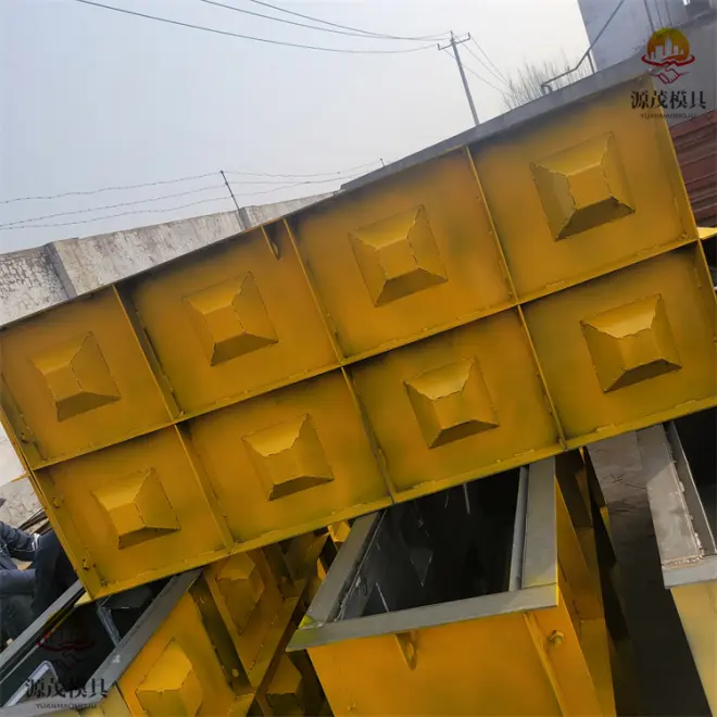 挡土墙模具是用Q235钢板为原材料进行加工制作的,主板是3mm-5mm,主板的厚度根据模具的规格尺寸选择,并且外围都有筋板进行加固。
