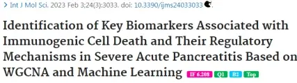 l 题目:基于WGCNA和机器学习识别重症急性胰腺炎免疫原性细胞死亡相关的关键生物标志物及其调控机制