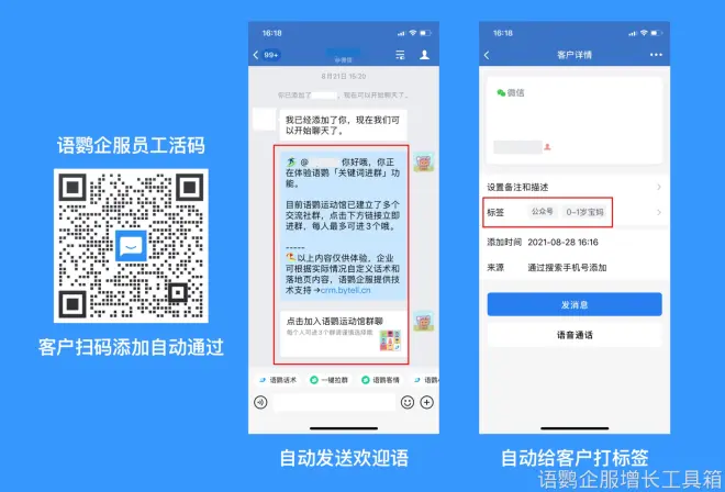 语鹦企服私域管家(crm.bytell.cn):基于企业微信的新一代SCRM工具。集合员工活码、超级活码、好友裂变、社群裂变、无限群活码、自动拉群、关键词进群、跨平台话术e库、历史朋友圈、个性化欢迎语、会话存档、进退群分析等众多工具于一身,欢迎免费体验。