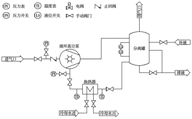 常用的工作液是水,亦可以用与工艺介质相适应的其他液体,如低粘度的油、乙二醇以及其他工艺溶剂,如甲苯、二甲苯、甲醇、乙醇、丙醇、丁醇和乙苯等,这些密封液可以采用如图2所示的全循环系统,以避免对环境的污染。
