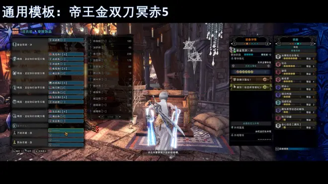 对于进度靠后想体验双刀的玩家,以及不追求极限伤害,或资源有限无法为个别题材准备针对性配装的玩家,可以尝试这个模板。只需要更换武器以及对应的属性强化饰品即可。