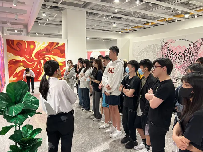 修读澳旅院 “游客管理” 科目的学生分别于2023年4月17及18日前往澳门银河综合度假城“银河艺萃”艺文空间。学院讲师梁嘉豪先生带领学生到该艺文空间参观“夏日恋曲” 艺术家驻场壁画现场创作及展览,邀请到“银河艺萃” 艺廊经理林毓珊女士及其团队围绕展出之壁画为学生进行导赏,以及于导赏结束后就 “游客管理” 议题进行分享和讨论。