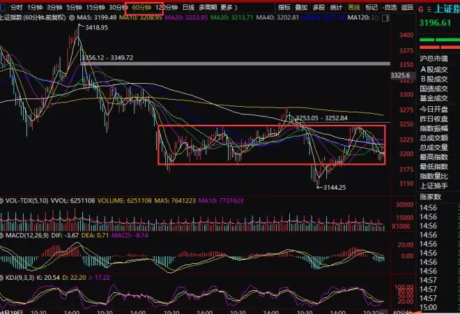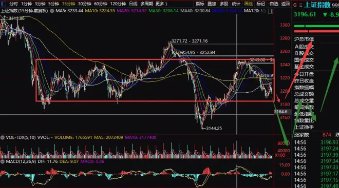 小周期走势要点:下面我们来看两个小周期,先看60分钟的周期,60分钟无疑形成了一个箱体及箱体的延伸线段,箱体区间为3180-3150,从60分钟Macd没有彻底下水但已经跌破了60单位线,那么这里破掉这个箱体的技术需求概率是增大的,如果破掉这个箱体的话,那么60分钟MACD直接会彻底下水,但这不会是一蹴而就,这里应该有个微弱的反弹在继续向下。那么如果破掉这个箱体,再看前期3144,如果把3144打掉,接近3130的话,那么既可以补掉缺口,又可以走出完整的日线级M的底背离。当然这里也是具备直接反弹后再次共计箱体上演的可能性的这就是60分钟的不确定性。带着这种不确定性,我们再来看看15分钟图的箱体结构,这个箱体结构就更加明显,目前15分钟图上由于MACD15分钟还没有走出底背离。同时,15分钟的KDJ也处于中位区间,可上可下,因此15分钟和60分钟都可以告诉你,目前在短线上无法明确知道它是要立即反弹还是会走路向下的。最后的结论就是,短线依然后非常大的不确定性
