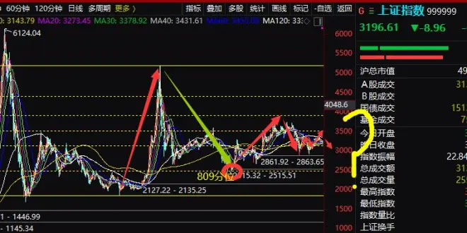 前期走势回顾:上证指数从1049点周线一笔向上走出了历史第二高点5178,随后下调回调至809分位。在经线位和黄金支撑共同作用下企稳开始反弹。那么在这个部分的走势可以明确的看到黄金分割809分位与警戒双支撑的巨大作用,此后展开反弹,反弹时留下了2515和2863附近的两个缺口至今未补,23年0429和在2023年11月份二次回踩缺口而不补,直接做成双底结构。这种在周线上的表达就是给所有玩家划下了一明牌,国某队在这里的立下了2863就是大底定调,也就是,只要没有系统性风险如战争等,基本不可能出现破位的情况。2863大概率不会再回补,面对这样的强势周线跳空缺口支撑结构,我们该如何制定自己的交易计划呢?会不会再被主力吓跑呢?那么后续上证指数向上走是毫无疑问的,这里请大家一定要从这张图上看出技术上想表达的东西。在这样的机遇下,左侧选手需要去寻找周线或月线上处于低位的股票,右侧选手应该选择低位反转刚刚开始,站上20日或者60日回踩后的股票,超右侧选手祝你们好运;波段选择应该标记好波段上下沿,大胆做好每个波段。