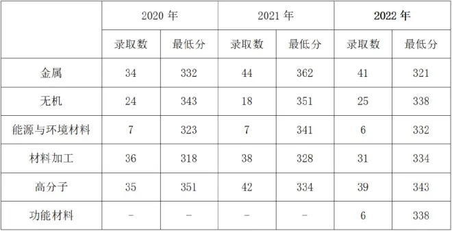 历年材料学院录取人数及复试分数线