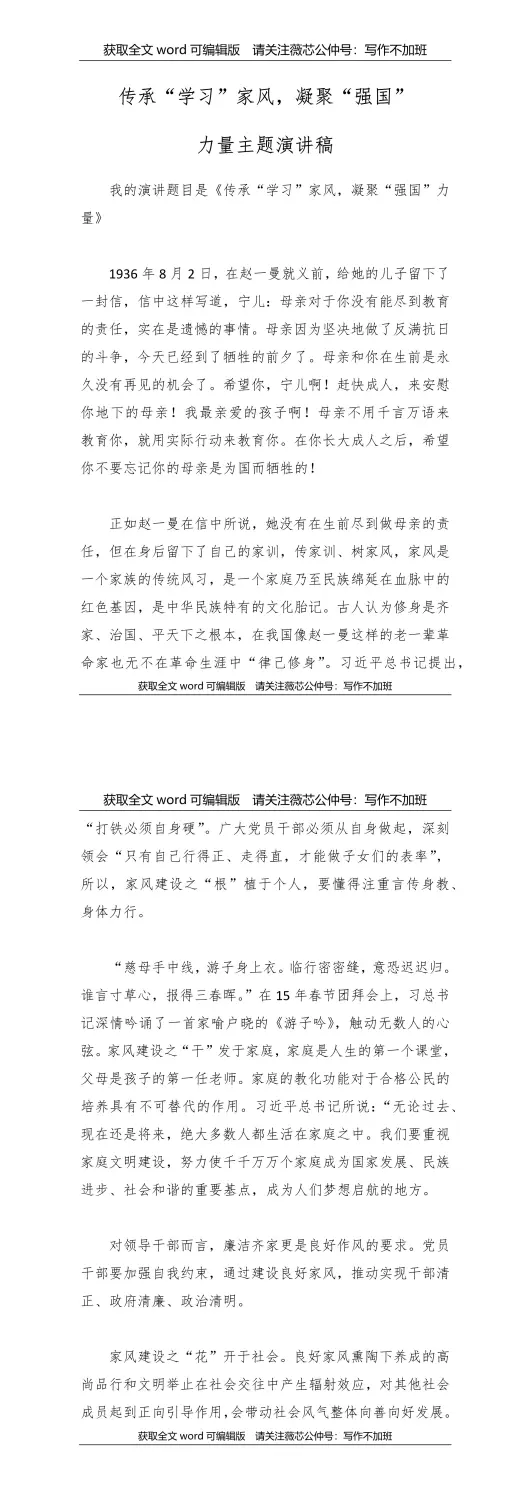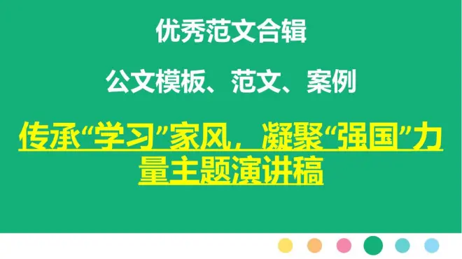 【范文1】关于“传承“学习”家风,凝聚“强国”力量主题演讲稿”材料1(4237字)金句精选