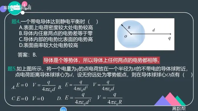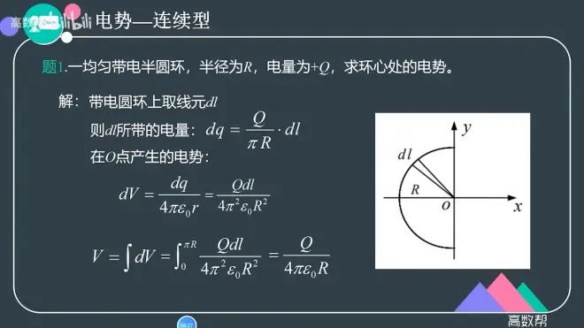 例题中:O点电势由感应电荷激发的电势(此处为0)和点电荷激发的电荷组成