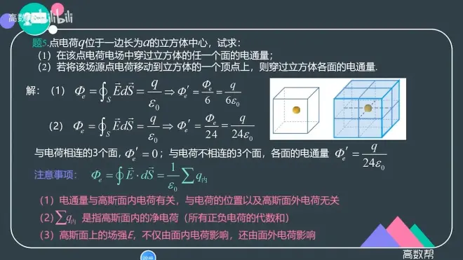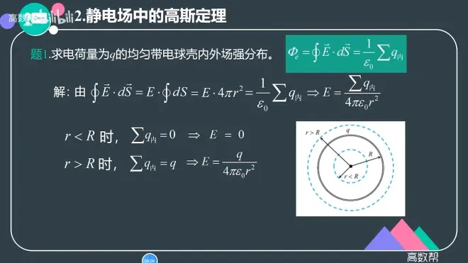 例题:静电感应使得金属球的电荷集中在表面,球内部电荷为0