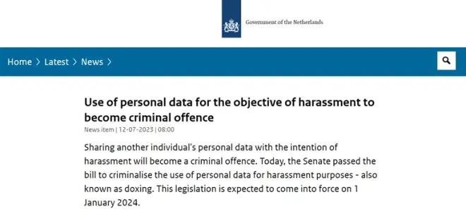 2. 荷兰立法将人肉搜索列为犯罪,预计于2024年1月生效