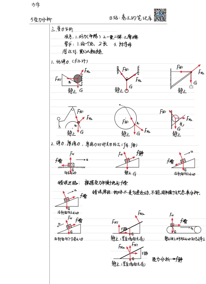 弹力,摩擦力的情况,摩擦力的种类要标出(滑,静)