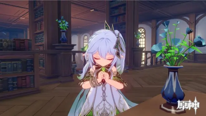 很快,丽莎带着旅行者荧来到了图书馆,她一脸纠结的样子让好姐妹阿荧有些奇怪。