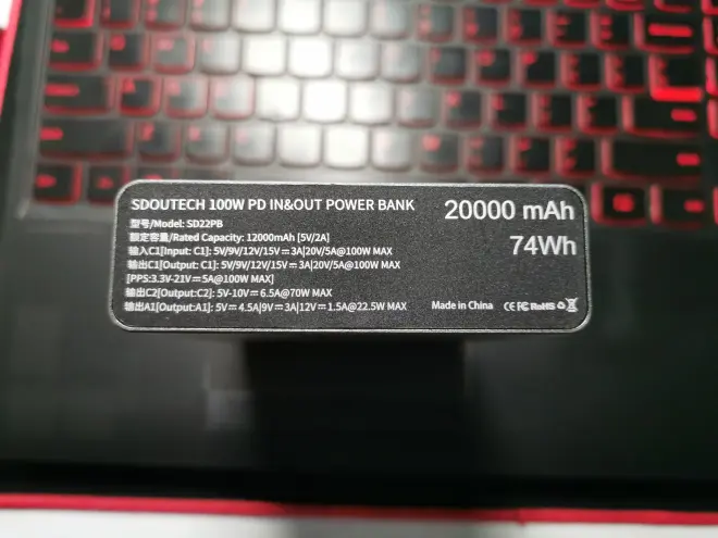 Sdoutech移动电源采用4节21700锂离子电池,支持100W大功率输出,可为轻薄本和支持PD充电的游戏本供电,同时支持100W和65W自充,2小时内即可充满,且带有温控,可降低电池过热的风险,对于需要大功率移动电源的用户来说是个不错的选择。