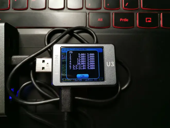 使用USB电流表检测各个接口支持的协议,检测结果如下
