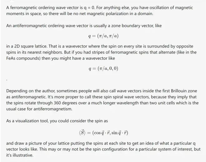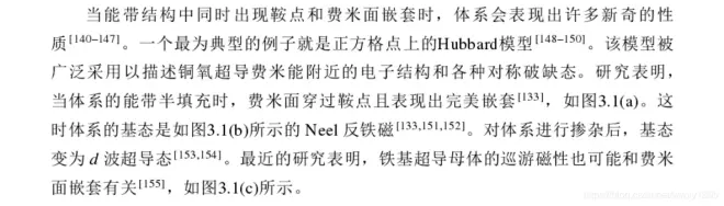 对于巡游电子,费米面的形状还有费米面的嵌套(Fermi surface nesting)能够反映磁序波矢(magnetic ordering wave vector)。至于为什么可以反映,可以参见附录对于这两个概念的解释,然后配合上自己的思考。