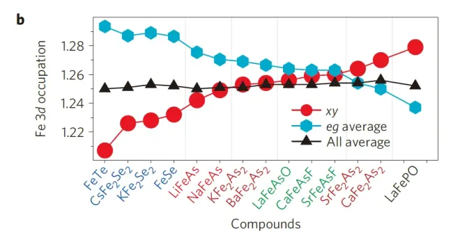 因为重的准粒子具备更窄的能带,对于晶场环境更加敏感,从而更容易发生晶场劈裂,所以可以解释FeTe的轨道差异最大,而LaFePO的比较小。晶场劈裂造成的后果从Fig. 2b也可反映,比如劈裂之后,电子从t2g轨道transfer到eg轨道,xy轨道是t2g轨道电子transfer的主要贡献。