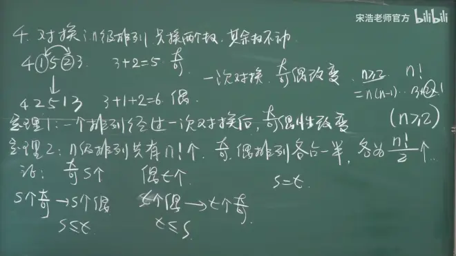 n=4k+2或+3时是奇排列