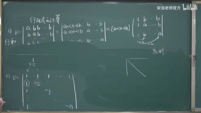 (2)爪形行列式解体技巧一样:用-2消掉1,-3消掉1,以此类推 (想办法化成上三角下三角)