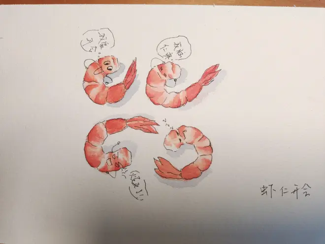 昨天学习画虾仁,今天虾仁小分队开会啦,可并不是每只虾仁都喜欢开会。