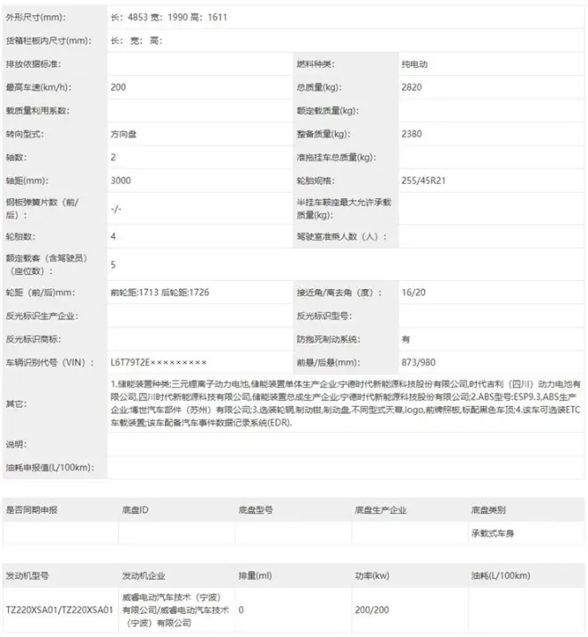 性能方面,高配的双电机四驱版车型0-100kph加速成绩3.9秒内,极速200kph,搭载100kWh三元锂电池容量版的CLTC续航超过600公里。