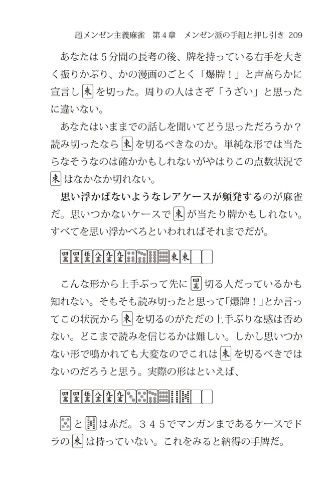 麻雀就是会频繁的出现人所想不到的稀有情况的游戏。如果能把所有情况都想到的话也就这样了。但在想不到的情况中,东就可能成了铳牌。
