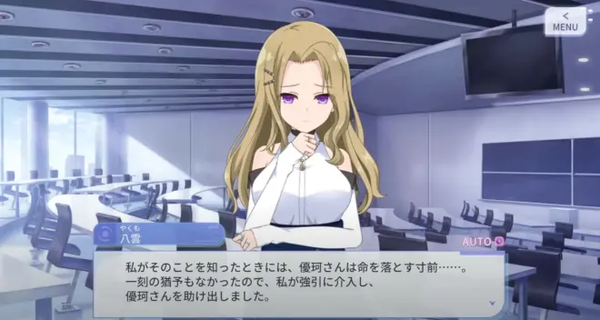 也因为有莉莉时代的盟友这样的事,所以八云校长和御台场的亚绮罗·布伦顿的思想很相似。在与GEHENA的战斗方面是主动牵涉进去的类型。