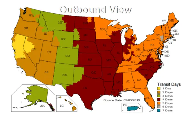 具体时效,可以参考UPS官网发布的以下6个美国热门港口发出的货物抵达各个区域的时间: