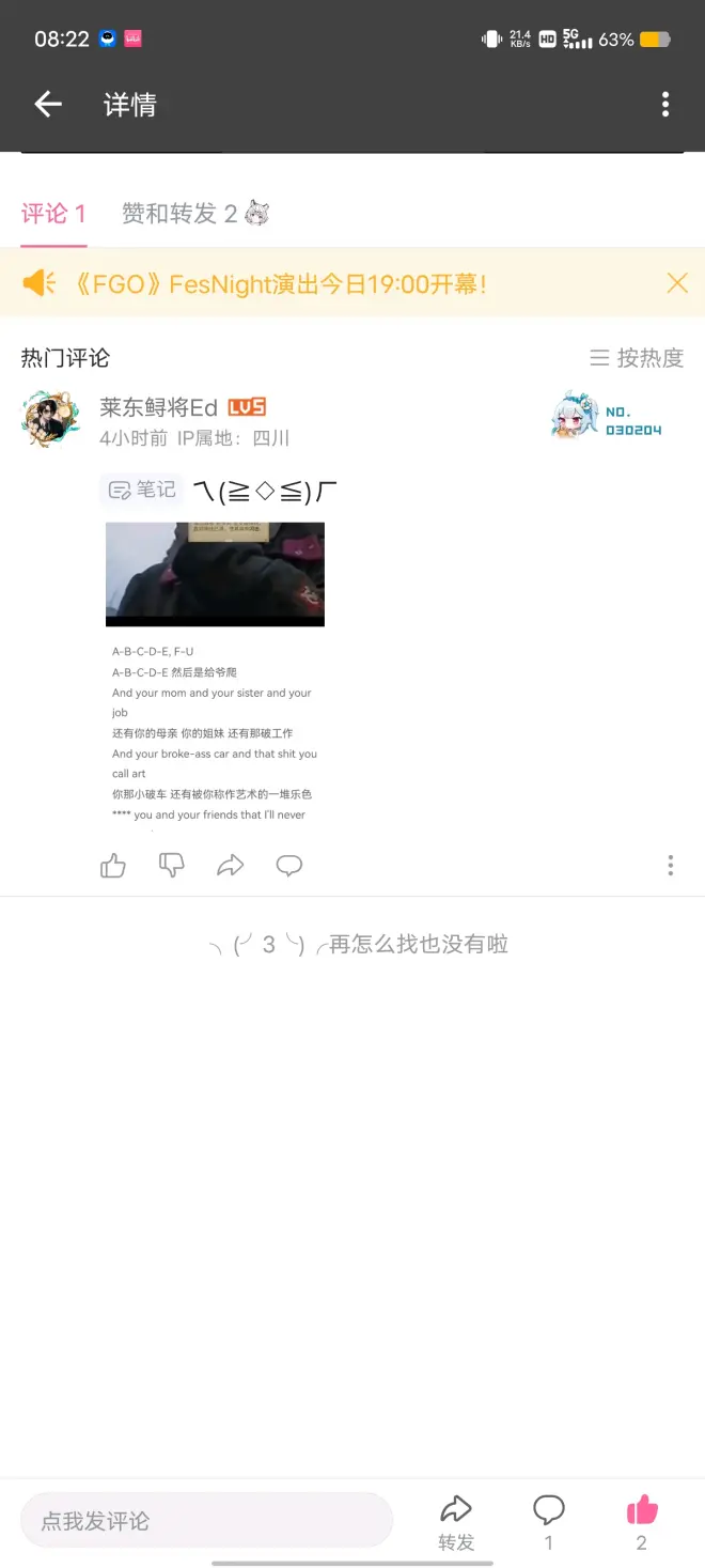 Ade,或者说是现在的莱东鲟将ed,我曾经的老友。我是之后被你拐下来当挡箭牌来应对其他与你有异议的人的,但是我远比那几个当事人愤怒,原因不言而喻,我对你问心无愧,一忍再忍,但你固然是骂我骂得最狠的。我找人取证过你两年前所对他人无端辱骂被挂的事情,我不会让这件事情就这么算了,因为这都是你咎由自取,自作自受。两年前的受害者是呆萌,现在的受害者是我,你如此蔑视我的信任,我对你的宽容和接受,我的人格,我的尊严和精神支柱。那也休怪我对你不客气 不止是我们,其他人,甚至圈外的人,看了你的光辉履历都不禁啐你一口唾沫,你真的以为我平常对你客客气气的,就是好欺负吗?看来你确实是一个坏种,那么我也绝对会为你争得一个坏种应有的待遇。 至于对我说不要和小丑一般见识的人,我理解你们对我的关心和建议,你们也是不想让我因此太内耗,好意我心领了。但是对于我的观念来讲,如果一只蟑螂跳我的脸,我绝对会抄起拖鞋不把它打死绝不罢休,我想只要没有违背公序良俗和客观的声音,我是会一直遵从自己的意愿做下去的,我也希望将来不会再有同我和呆萌一样的受害者。 Ade,大家都是成年人了,应该要为自己的言行举止而付出相应的代价了,上一个说决不投降的东西,核武库数量已经是-2了。我再提醒你一句,出来混,迟早是要还的