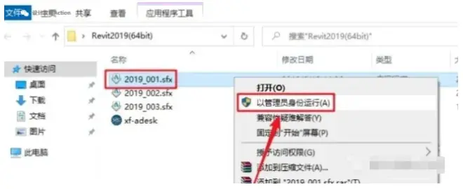 2、双击打开解压后的文件夹,鼠标右击【Revit2016.sfx】选择【以管理员身份运行】。