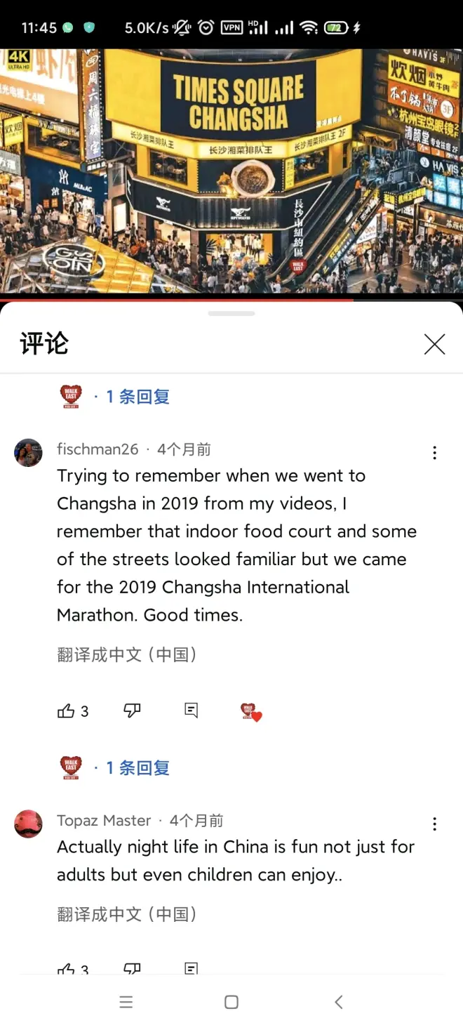 油管外国网友评论翻译:油管外国网友评论湖南省会长沙街头风光。说比纽约更有活力。以下油管外国网友评论截图顺序是先放翻译后的结果,然后再放原评论截图。