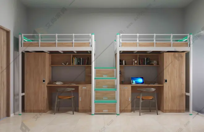 (3)稳定性:宿舍公寓床的稳定性至关重要,稳定性不达标,可能会导致床体侧翻或者坍塌。可采用承重效果好的冷轧钢为原材料的宿舍公寓床,床体衔接部分采用卡扣式,稳固静音,经久耐用。