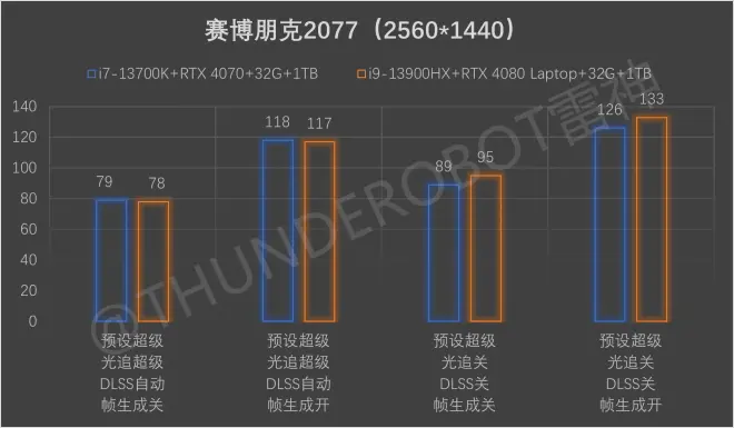 《赛博朋克2077》,在光追超级预设下,ZERO 2023比黑武士5 Shark低1帧;而在关闭光追和DLSS的超级预设下,ZERO 2023有6-7帧的优势。