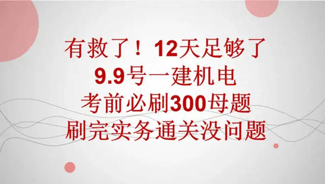 12天足够了!9.9号一建机电考前必刷300母题,刷完实务通关没问题