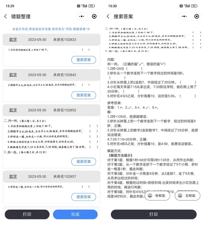 如果这些搜集的错题不会做,小程序还支持一键搜索答案,实测部分可直接搜到答案,没有也会给出相似的题型并给出解题步骤,思路都是相通的,也能当作学习参考。