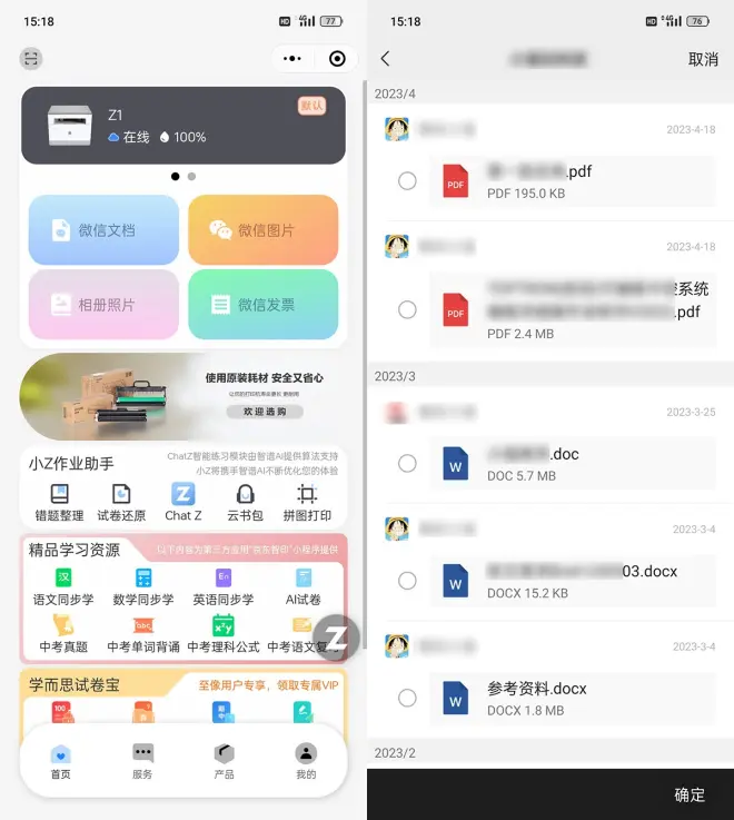 它这个小程序很好用,不用下载软件节省手机空间,而且使用也简单方便。还特别提供了微信文档、微信图片、相册照片、微信发票等快捷打印选项,老师在群里布置的作业,直接就能点开打印,不用再另存到电脑或U盘里打印,一键直达没有繁琐的操作。