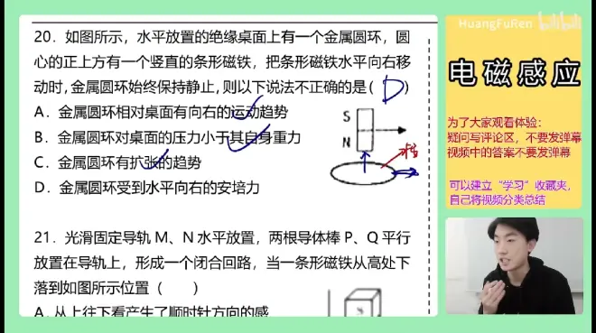 A为了阻碍磁通量,不让它减小,所以线圈和它一起向右运动